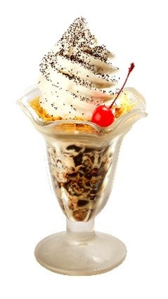 自家製のコーヒーゼリーにたっぷりソフトクリームが乗った大満足の一品。