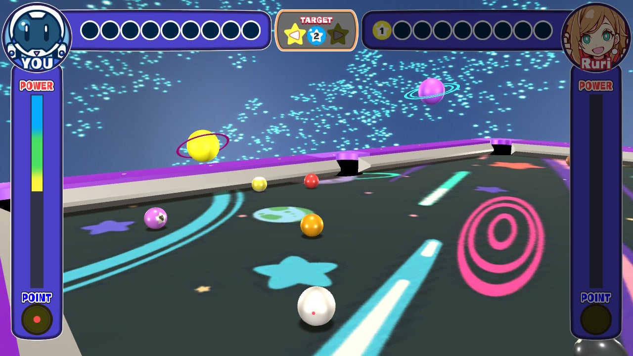 本作は、プレイヤーがキャラクターとビリヤードで対決するスポーツシュミレーションゲームとなっています。