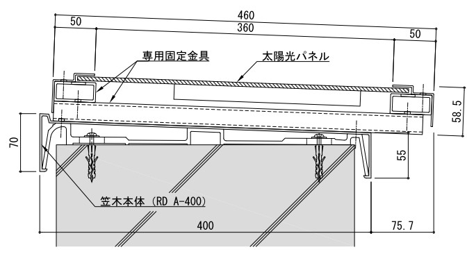 当商品は、屋上にある笠木の天端面に着目し、笠木本体と太陽光パネルを専用固定部材にて一体化させることで、限られた屋上スペースを有効活用できる画期的なシステムです。一般パネルのような大規模な架台が不要なため、設置スペースが限られている場合でも、設備機器の配置に悩むことなく効率的に太陽光発電を実現できます。さらに、笠木と一体化したデザインで、建物の美観を損ないません。