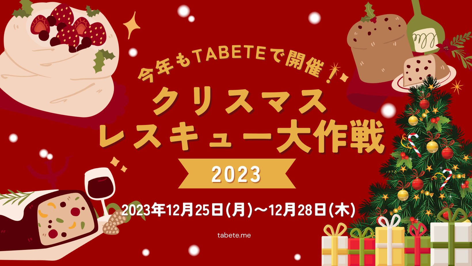 クリスマス後に発生する食品ロス削減をTABETEで推進するプロジェクト「クリスマスレスキュー大作戦2023」を、12/25(月)〜12/28(木)の4日間実施