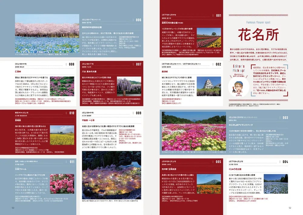 「九州で春に行くならココ!」という場所を100スポット集めました。花名所、イベント、体験スポット、遊園地・テーマパーク、アート、日帰り湯の6ジャンルで、九州全域の春の注目スポットをセレクト。編集部員が今までの取材経験を活かし、人気ぶりや、おすすめのポイントなどをお伝えします。