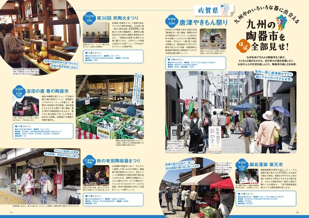 九州をとことん楽しむためのレジャーガイド本「九州LOVEWalker」。その最新号では、有田、唐津、伊万里など焼物の名産地が点在する九州で、思わず集めたくなる「器」をピックアップしました。全国から100万人以上が訪れるGWの一大イベント有田陶器市など、九州各地で開催される26の陶器市全紹介や、国内外で注目される波佐見焼の里を巡るコースなど、器好きの方はもちろん、初心者の方にも楽しんでいただける内容です。
