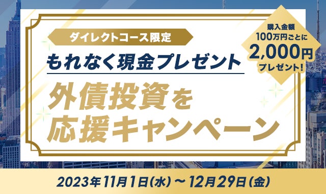 【もれなく現金プレゼント】外債投資を応援キャンペーン<ダイレクトコース限定>について詳しくはこちら