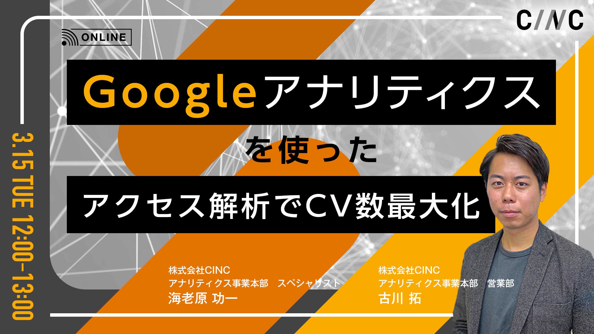 【株式会社CINC】GoogleアナリティクスでCV数を最大化させるオンラインセミナーを3月15日に開催