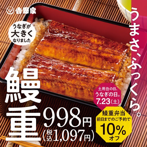 吉野家、土用丑の日「鰻重」「鰻皿」を10%割引本日より予約注文受付開始