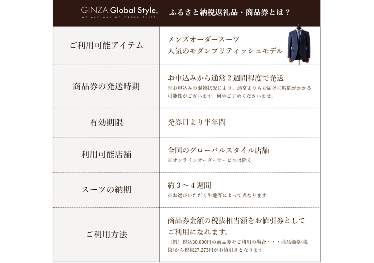 【ふるさとチョイス】【楽天ふるさと納税】で大人気のオーダースーツ専門店「グローバルスタイル」のふるさと納税が、【ふるなび】でもお取り扱いSTART!