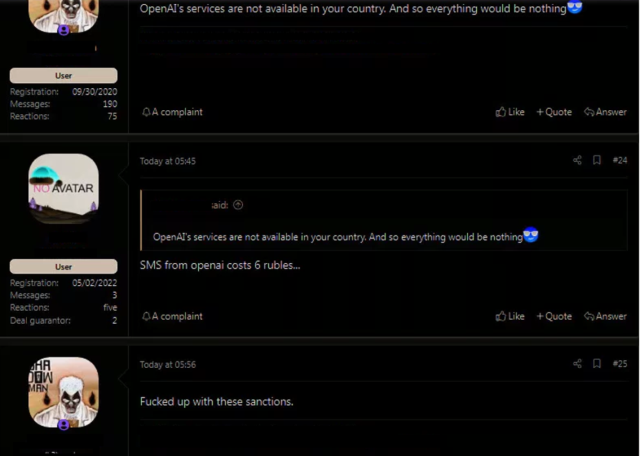 ハッキングフォーラムで交わされる、ロシアからChatGPTにアクセスするための議論