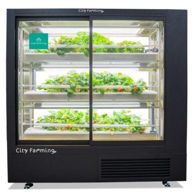 「City Farming」は、季節を問わず生活空間でいちごを栽培でき、フレッシュないちごをシェアできる新しい植物工場パッケージです。このたび、本事業の掲げる「持続可能な都市生活と、華やかで鮮度ある空間を創造する」志に賛同いただき、奈良 蔦屋書店への「City Farming」導入が決定いたしました。