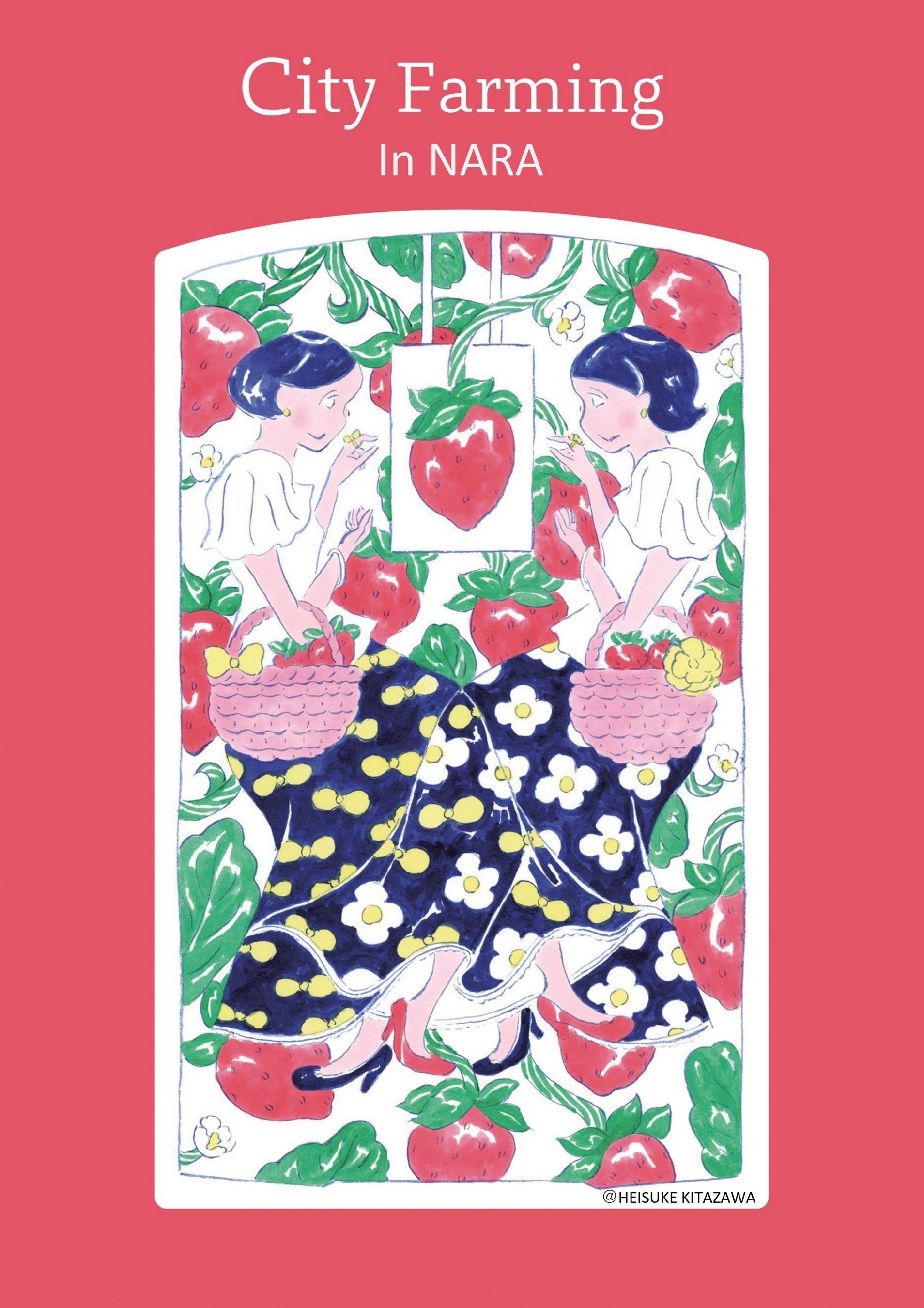 ブランド名の「六本木いちご畑」は「City Farming」事業の実証実験を文喫 六本木(東京都港区)でスタートさせたことが由来となっています。ラベルには、文喫 六本木で2022年8~9月に開催した特別企画展「六本木いちご畑」のメインビジュアルを手掛けたイラストレーター・北澤平祐さん書き下ろしの限定イラストを使用。思わず手に取りたくなるかわいいデザインとなっています。