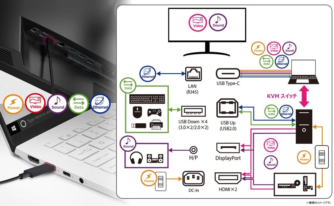 LAN | KVMスイッチ | USB Type-C™| USB Down×4 | 有線PBP