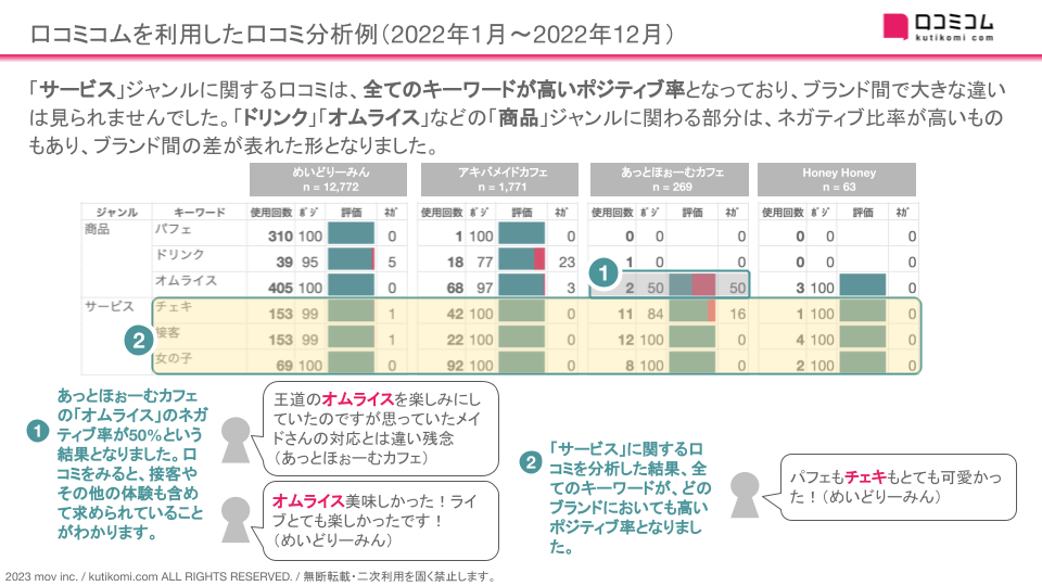 レポートでは、「アキバメイドカフェ」「あっとほぉーむカフェ」「Honey Honey」についても同様に分析しています。ダウンロードして、是非ご確認ください。