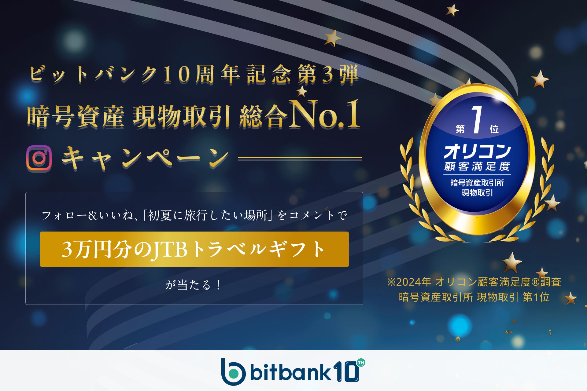 3万円分のJTBトラベルギフトが当たる!「ビットバンク10周年記念第3弾!暗号資産 現物取引 総合No.1獲得記念キャンペーン」を開催