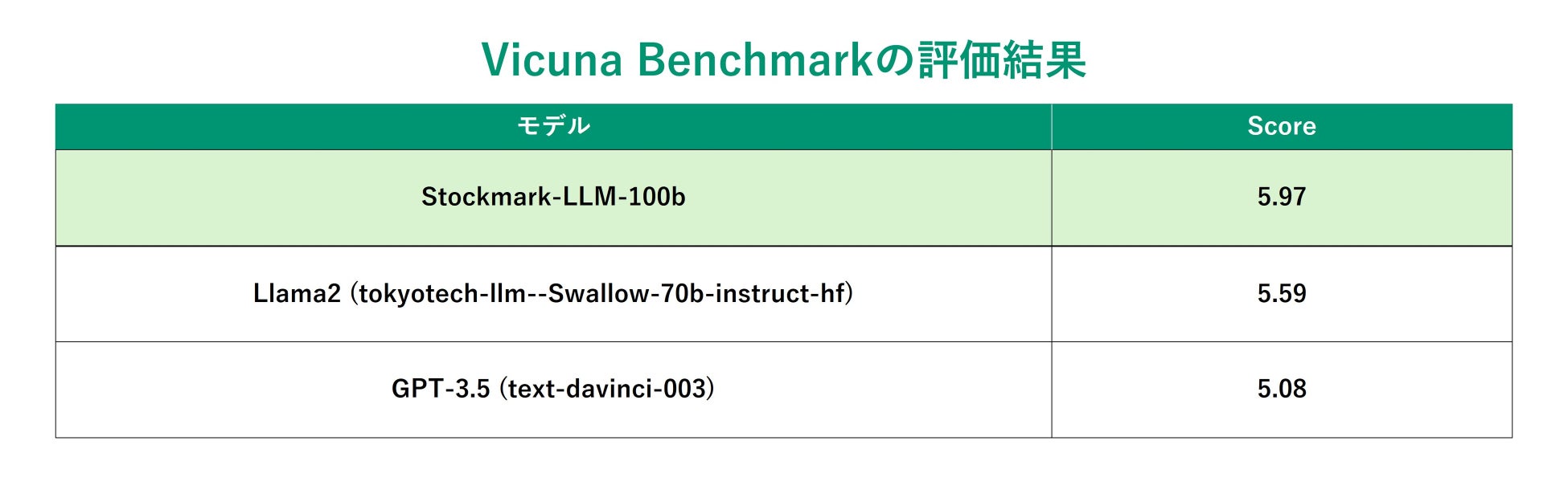 LLMのモデル評価で活用されるVicunaQA Benchmark※3においても、他モデルと比較し高い水準を達成しています。