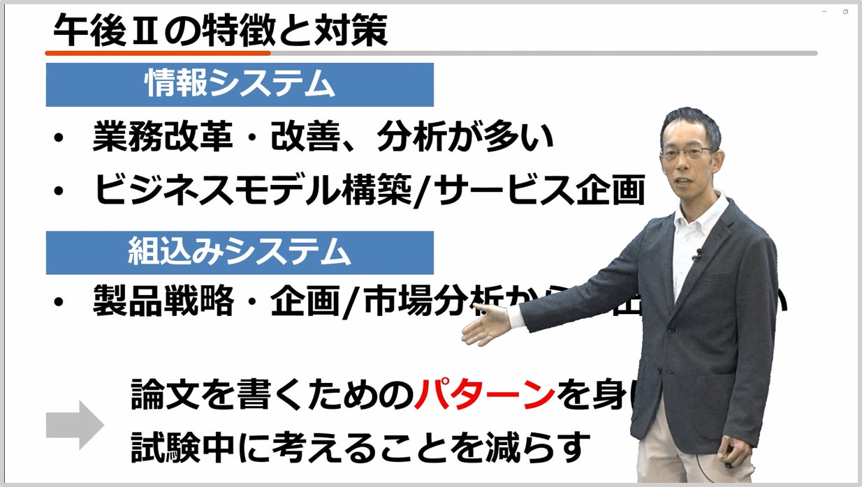 そこで、スタディングの午後Ⅱ試験対策では、未経験でも書けるアプローチ方法と事前準備方法、さらに採点者の視点を踏まえた解法ノウハウを動画で実践的にお伝えします。