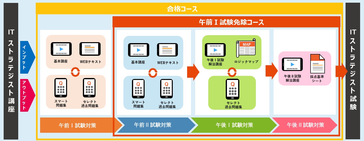 午前Ⅰ~午後Ⅱ試験まで、合格に必要な教材が全て揃っており、スタディングだけでITストラテジスト試験合格を目指すことが可能です。