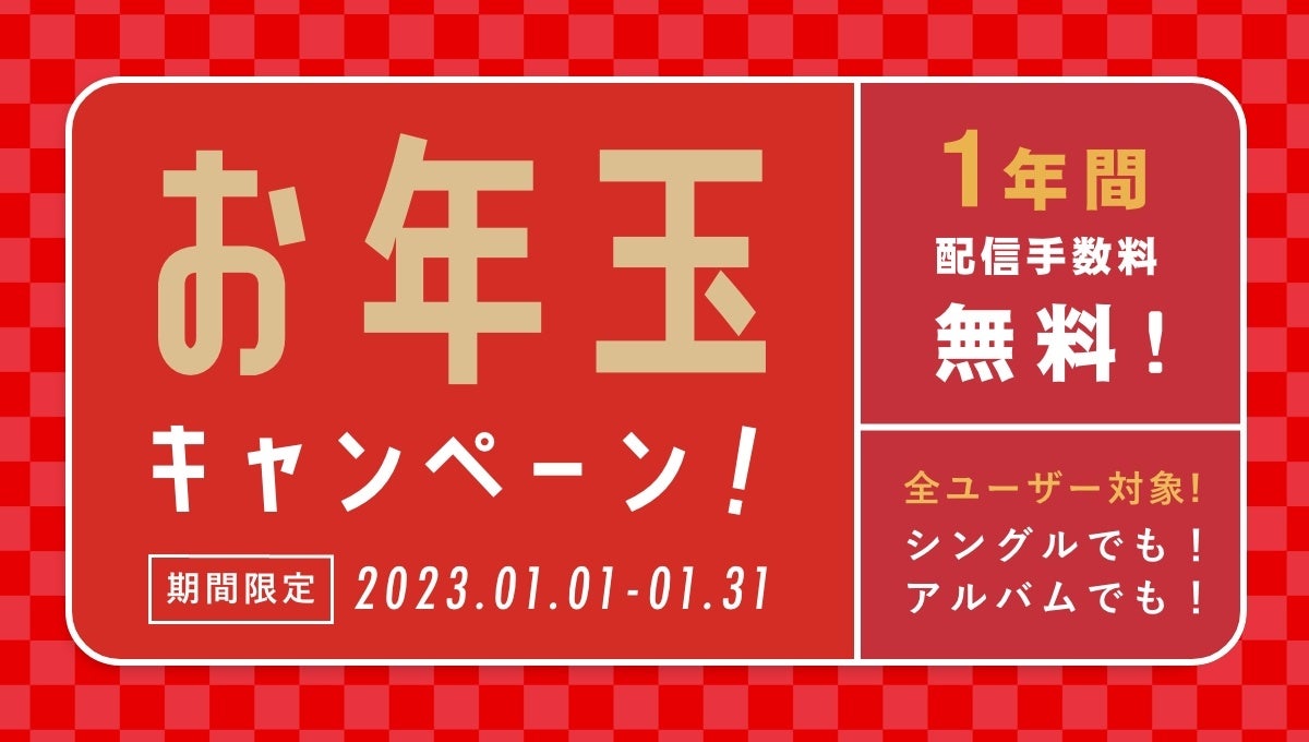今回のキャンペーンは新規・既存問わず全てのユーザーが対象で、さらにシングル、アルバムどちらでも配信手数料(1年分)が無料となる、まさに「お年玉」といった内容となっている。