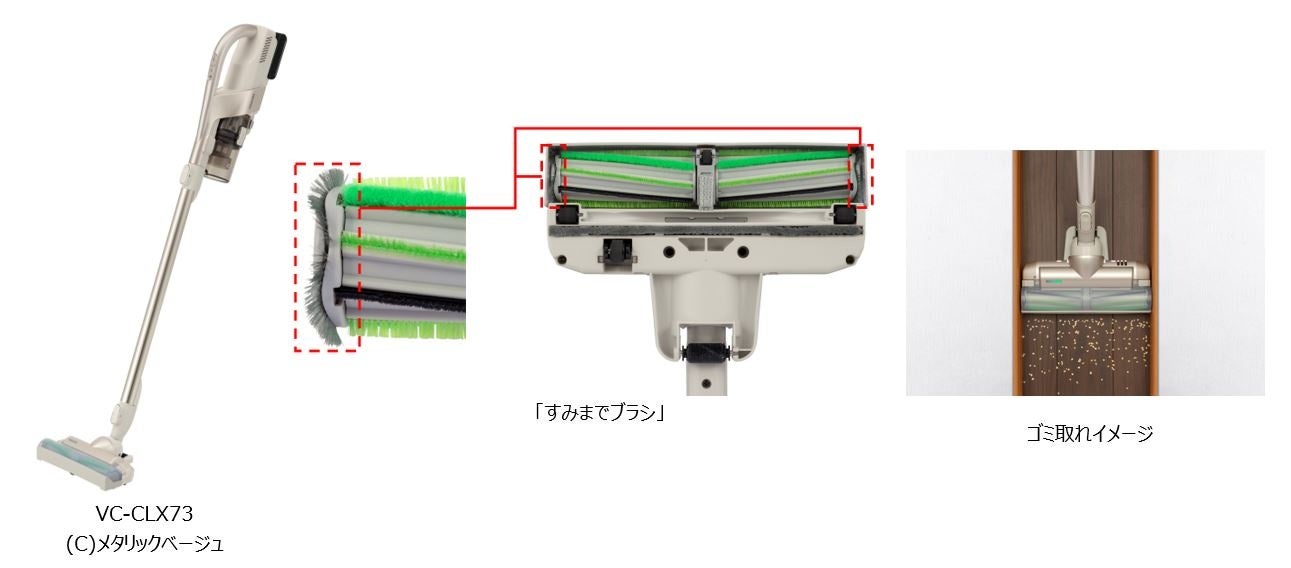 「すみまでブラシ」で壁際のゴミもキレイに取り除く コードレススティック掃除機発売