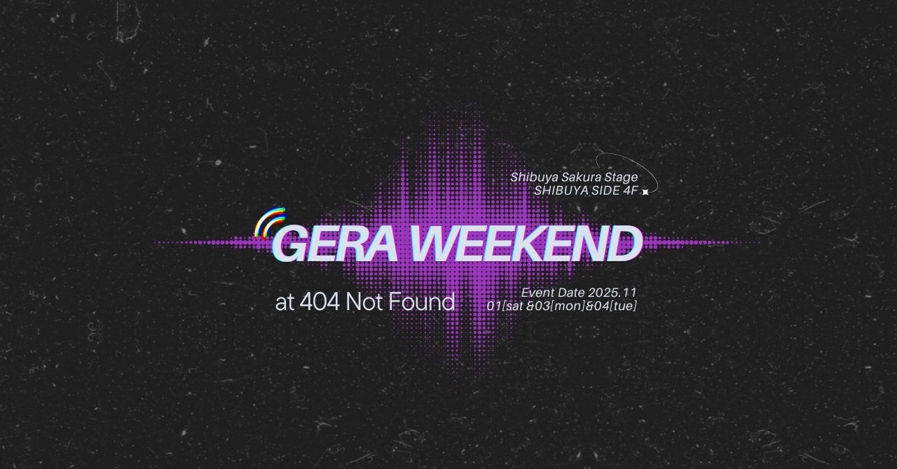 プロシューマー支援事業を展開する株式会社ファンコミュニケーションズ(本社:東京都渋谷区、代表取締役社長:二宮幸司、東京証券取引所プライム市場:2461)が運営する国内最大級のお笑いラジオアプリ「GERA」は、渋谷サクラステージ SHIBUYA SIDE 4F 「404 Not Found」にて、GERAで配信中の番組が公開収録や番組イベントを行う「GERA WEEKEND」を2025年11月1日(土)、2025年11月3日(月・祝)11月4日(火)に開催します。同フロアの「re-search」「TSUTAYA BOOKSTORE 渋谷サクラステージ」と連携した展示企画・物販もイベント前後の期間で実施予定です。