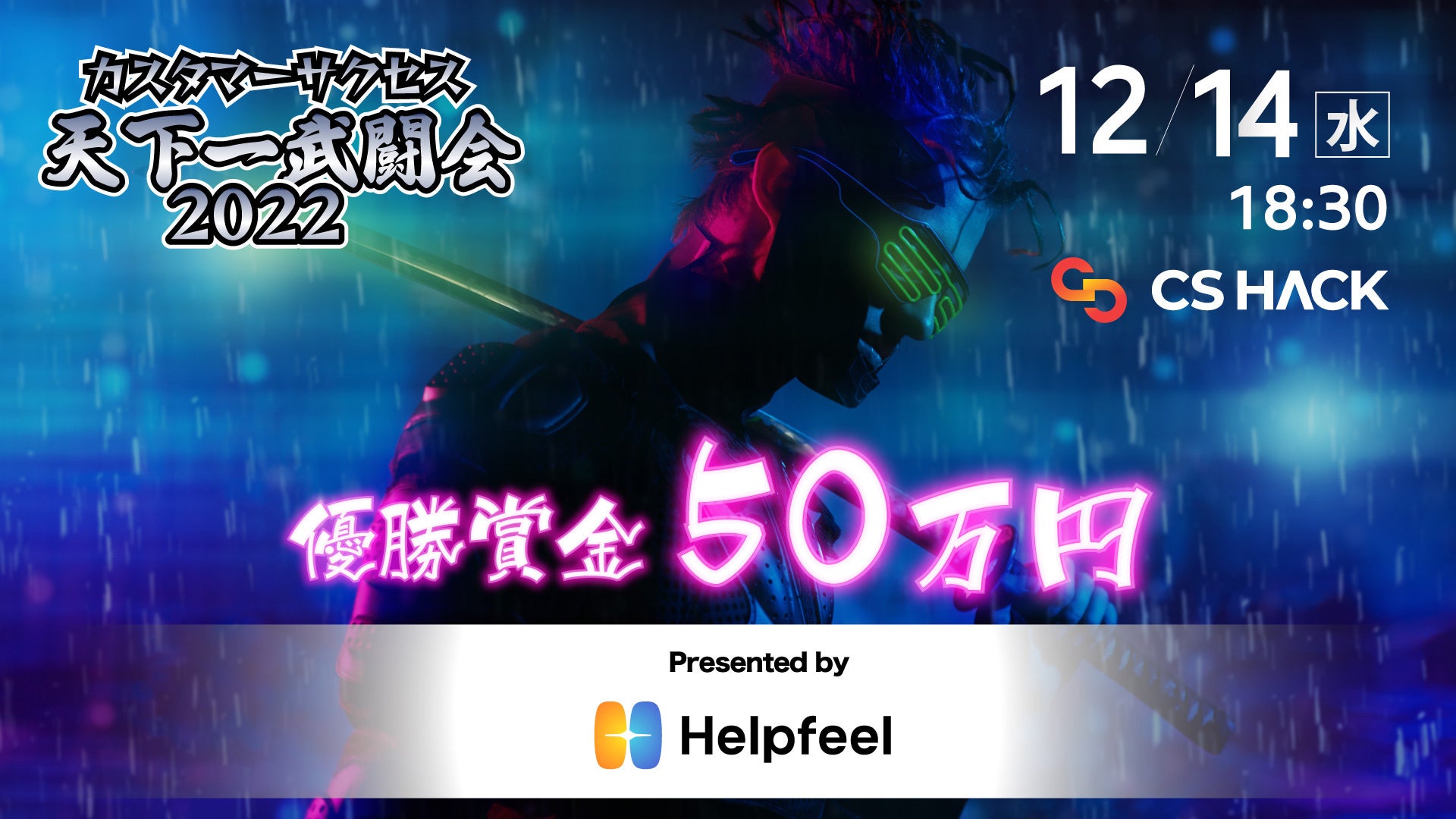 株式会社Helpfeel(京都府京都市 代表取締役/CEO:洛西一周 以下、当社)は、株式会社CS HACK(東京都渋谷区 代表:藤本大輔)が主催する「カスタマーサクセス天下一武闘会2022 Presented by Helpfeel」にプラチナスポンサーとして協賛します。