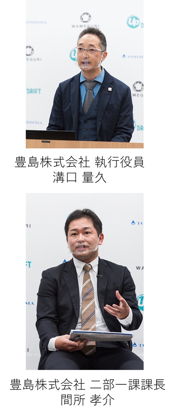続くトークセッションでは、豊島株式会社の溝口 量久、間所 孝介より、豊島の新プロジェクト「WAMEGURI(ワメグリ)」について発表を行いました。