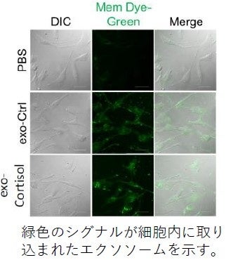 今回の研究では、細胞同士のコミュニケーションツールの1つであるエクソソームに着目しました。このエクソソームが、ストレスホルモンの1種であるコルチゾールの影響を受けた際に、どのように変化をするのか調査しました。