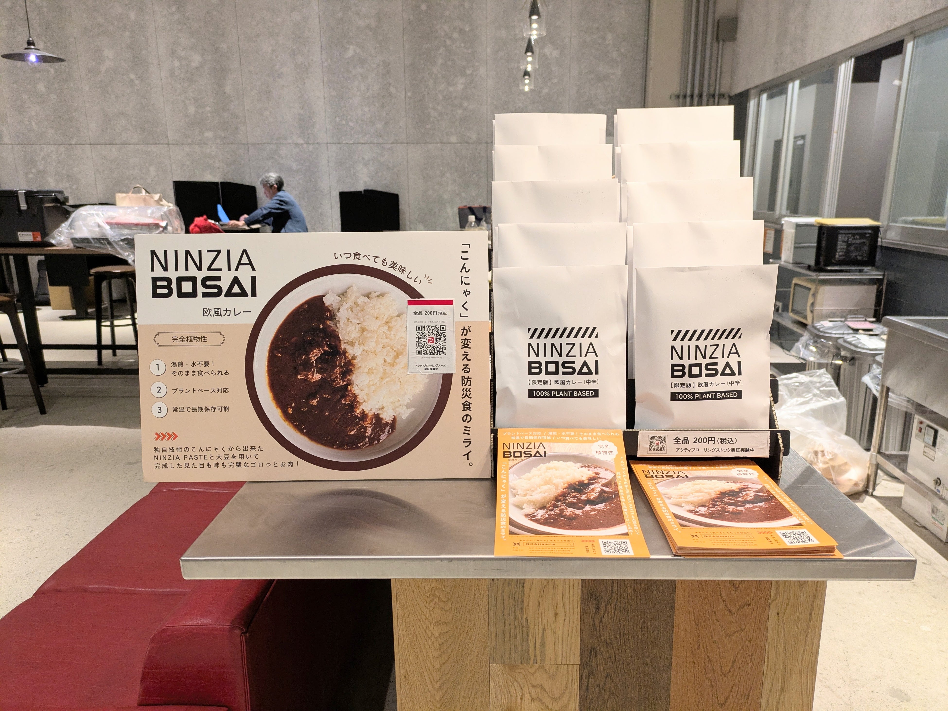 NINZIA独自のこんにゃく食物繊維技術と、不二製油の植物性油脂技術「MIRACORE®」を融合させた「プラントベースの防災カレー」をふるまいます。常温でも脂が固まらず、動物性素材に頼らない濃厚な味わいを実現しており、アレルギーやヴィーガン、ハラールといった多様なニーズに対応します。