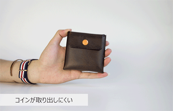 一般的な財布の小銭入れからコインを取り出す際に、小銭が蓋に引っかかることがありますよね。「MONO」の両面の蓋は直角三角形になるので、取り出す時は財布全体をちょっと握れば、コインが簡単に手のひらに落ちます。