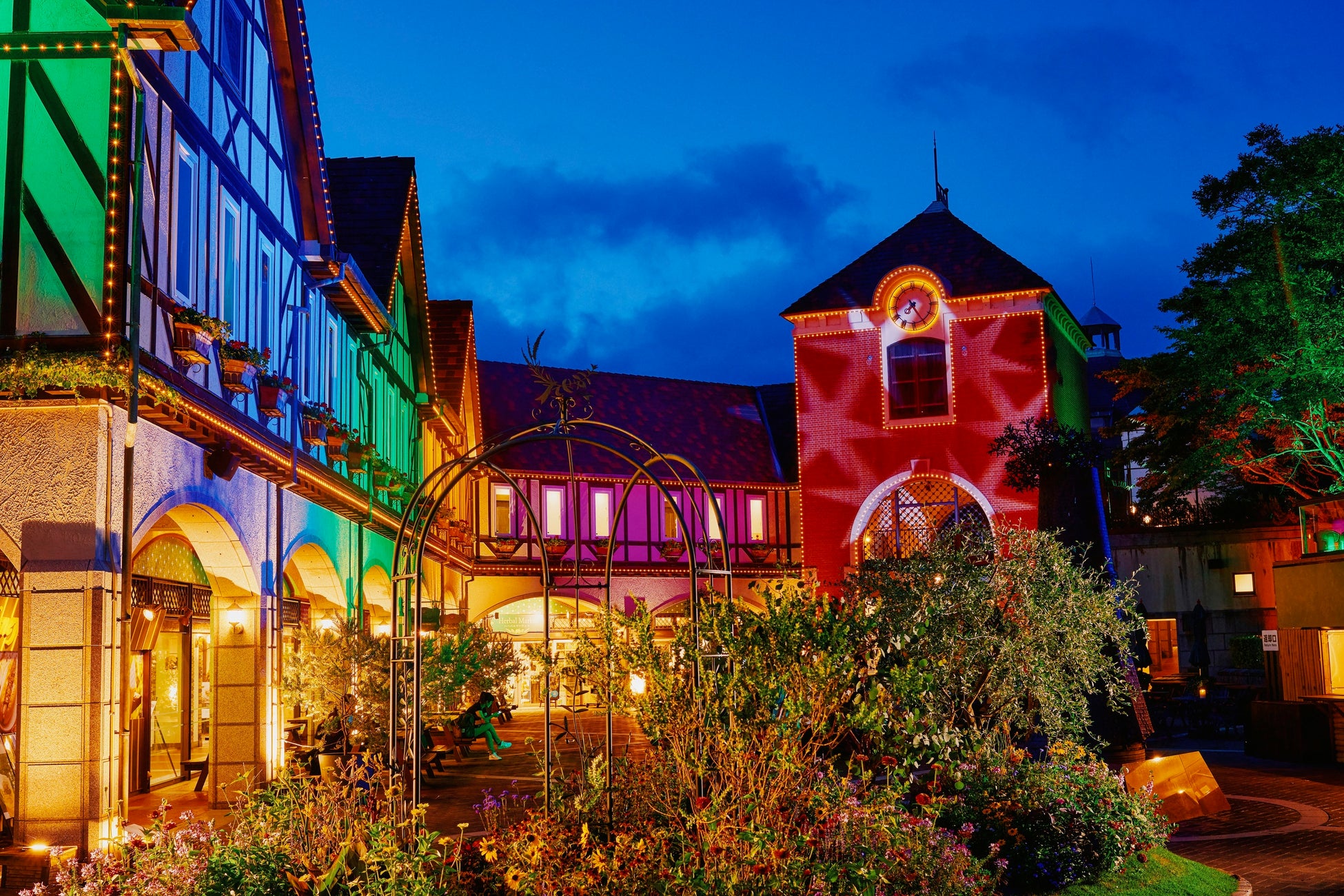 標⾼400mに位置する古城(ドイツのヴァルトブルク城をモチーフにした展望レストハウス)や城⾨、そこを取り囲む樹⽊をライトアップ。「森の大聖堂」をコンセプトに、クラシカルで厳かな、そして躍動感のあるオリジナル音源と、音色に合わせ移り変わる光に包まれた神秘の大聖堂を演出します