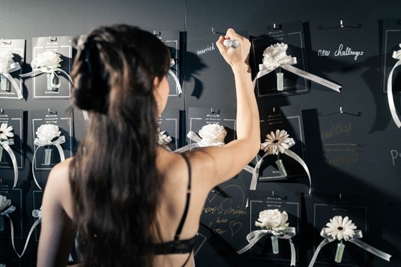 また、「高鳴りを、信じて。」をテーマに、“What makes your heart bloom?”(あなたの心を咲かせるものは?)という問いかけのもと、ゲスト一人ひとりが自分らしさについて考えながら参加できるフラワーボードコンテンツも設置しました。