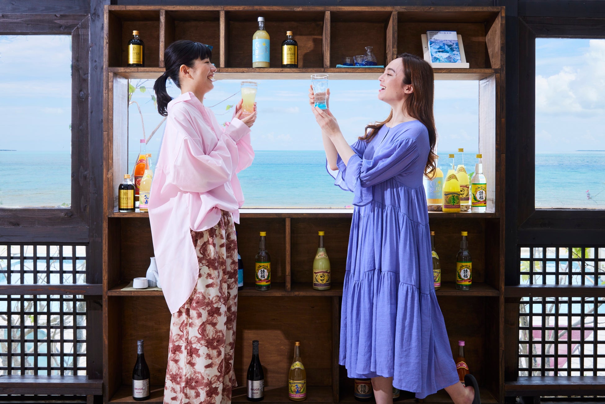 コバルトブルーの海を望むBOOKS&CAFEでは、10種類以上の請福酒造こだわりの泡盛や泡盛をベースとしたリキュールが並ぶ「泡盛BAR」を開催します。一般的な泡盛はもちろん、様々な年数の古酒、ゆずが香る泡盛ベースのリキュールなど、多彩な泡盛を自由に飲み比べることで、泡盛の持つ多様性を体感することができるイベントです。