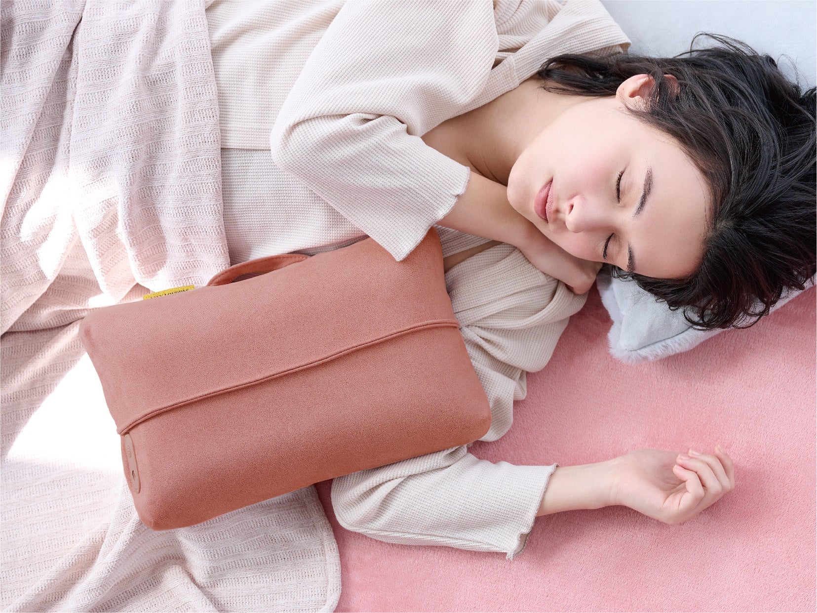 ミニサイズで体にフィットしやすく、持ち運びもしやすいマッサージクッションです。3つのもみ速度を搭載しており、中でもよりリアルな指圧を目指した「プロもみ®」は、当社の他のマッサージクッションにも搭載している人気のモードです。また、2つのもみ玉はバウンドしながら回転するので、人の手のような滑らかなもみ心地です。