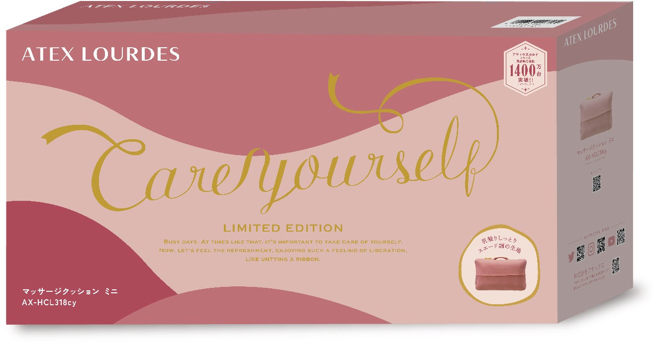 季節に合わせたアテックスルルドの「リミテッドエディション」は 毎年好評を得ています。今回は『ケアユアセルフ』をテーマに、忙しい毎日の中でも自分をいたわり癒やしてほしい、と思いを込めました。肌触りの良い起毛生地をマゼンタカラーに染め上げました。パッケージは特別仕様のデザインとなっており、ギフトにも最適です。