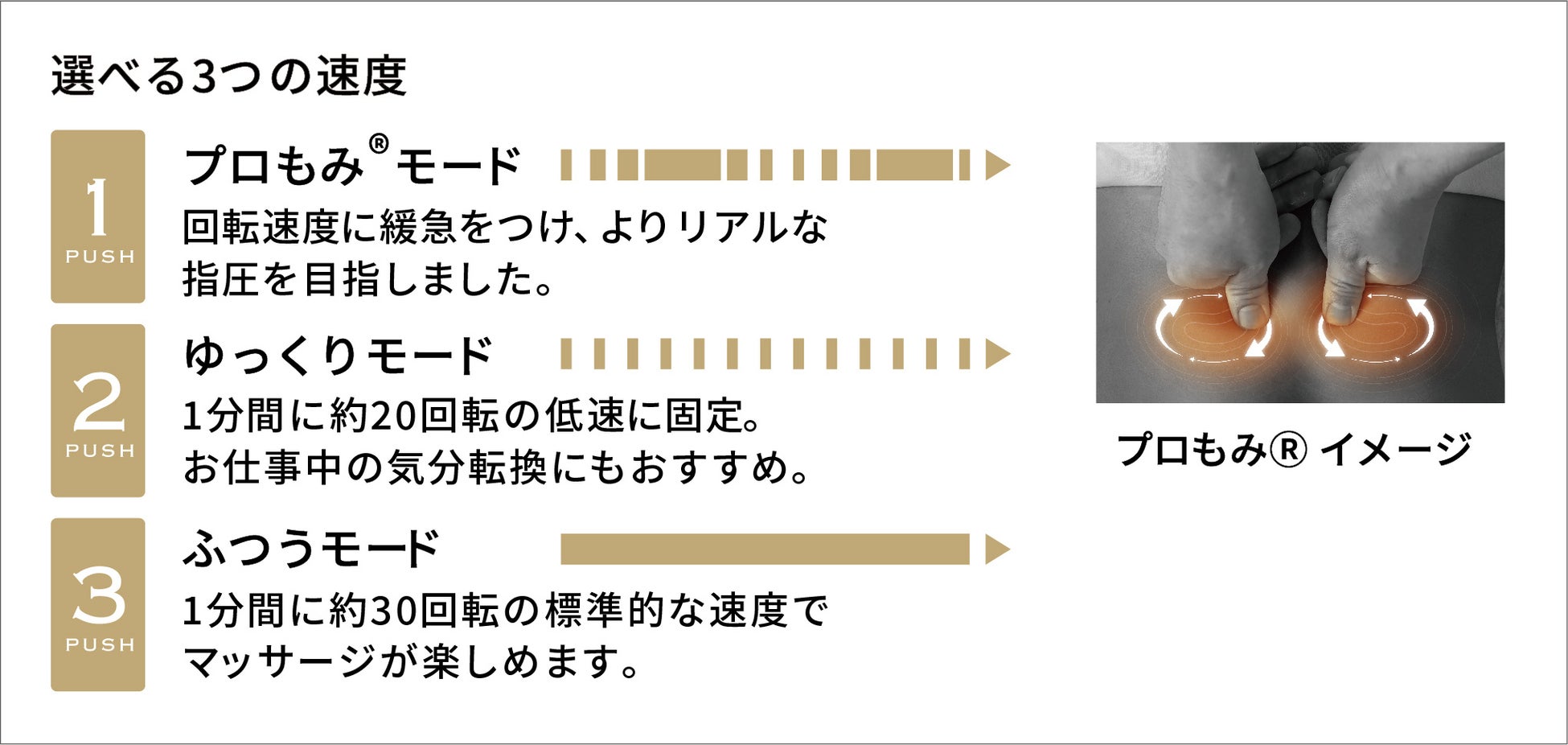 もみ速度 :プロもみ®・ゆっくり・ふつう