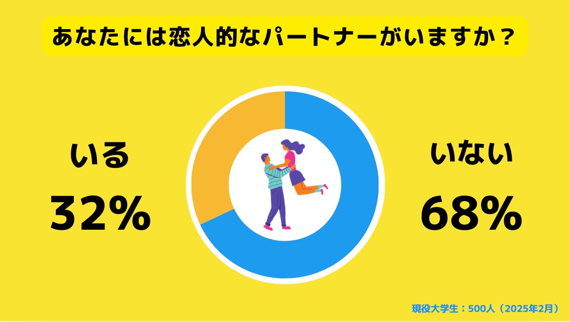 ■大学生の32%が恋人的なパートナーが「いる」と回答。