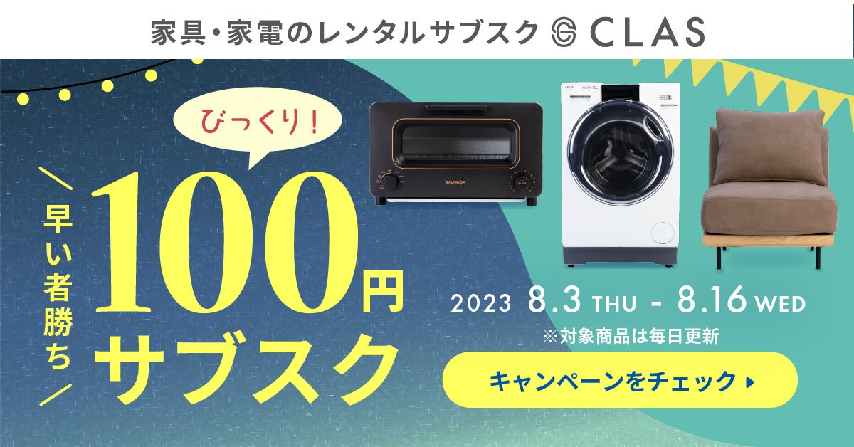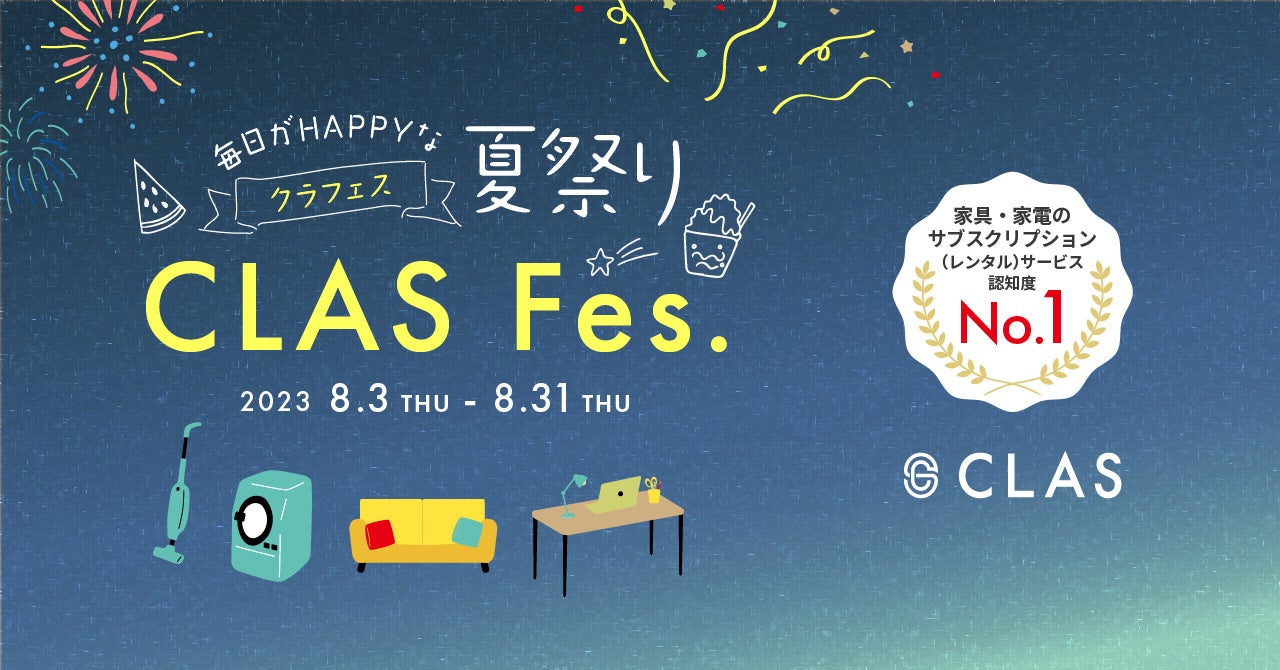 認知度No.1の家具と家電のレンタル・サブスク「CLAS」、毎日がHAPPYな夏祭り「CLAS Fes.(クラフェス)」開催!最大2万円分のポイントバックや、数量限定で月額ずっと100円の商品も!?