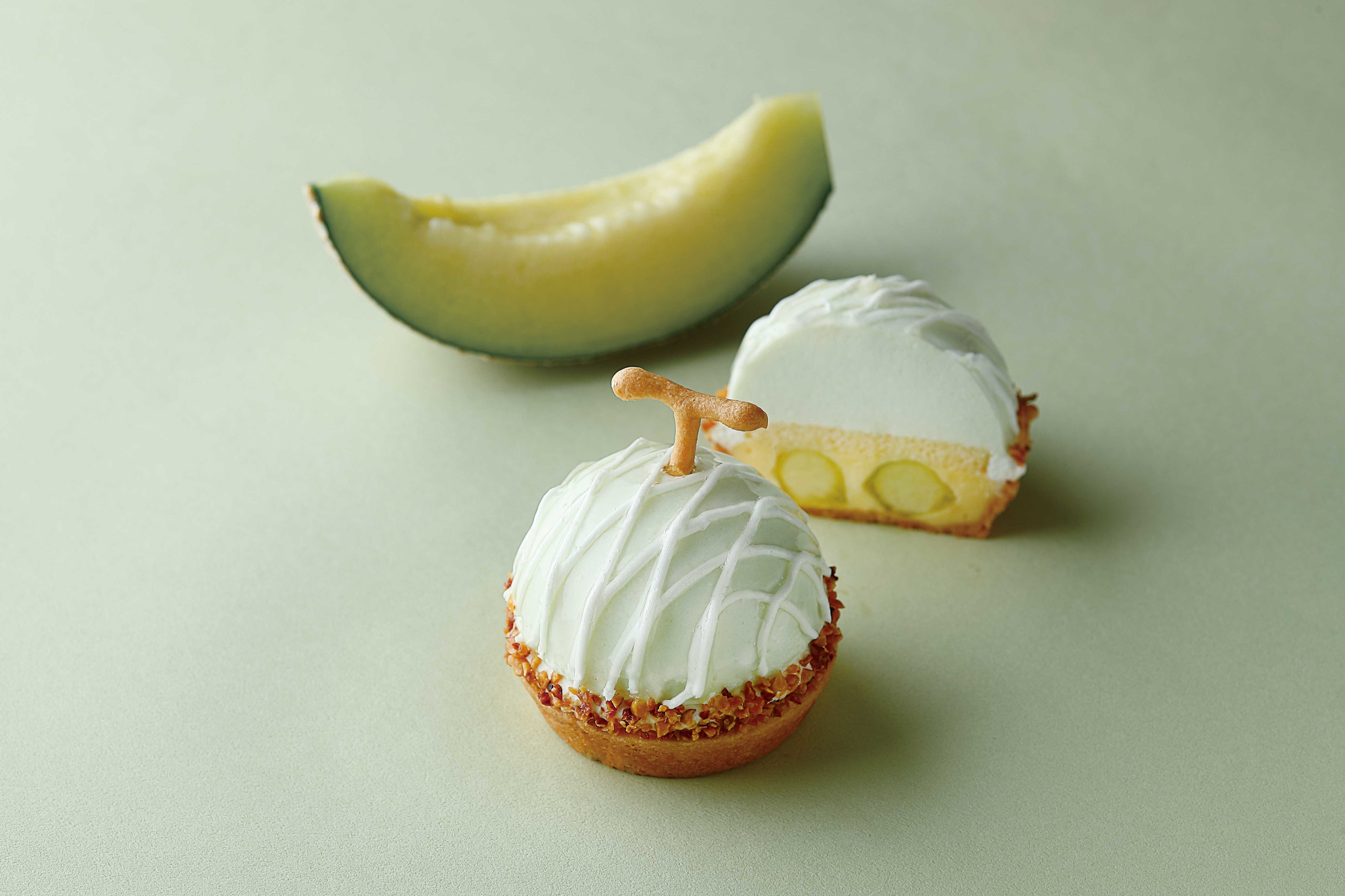 メロン果汁たっぷりのムースと果肉入り!サクサクタルトとも相性抜群。