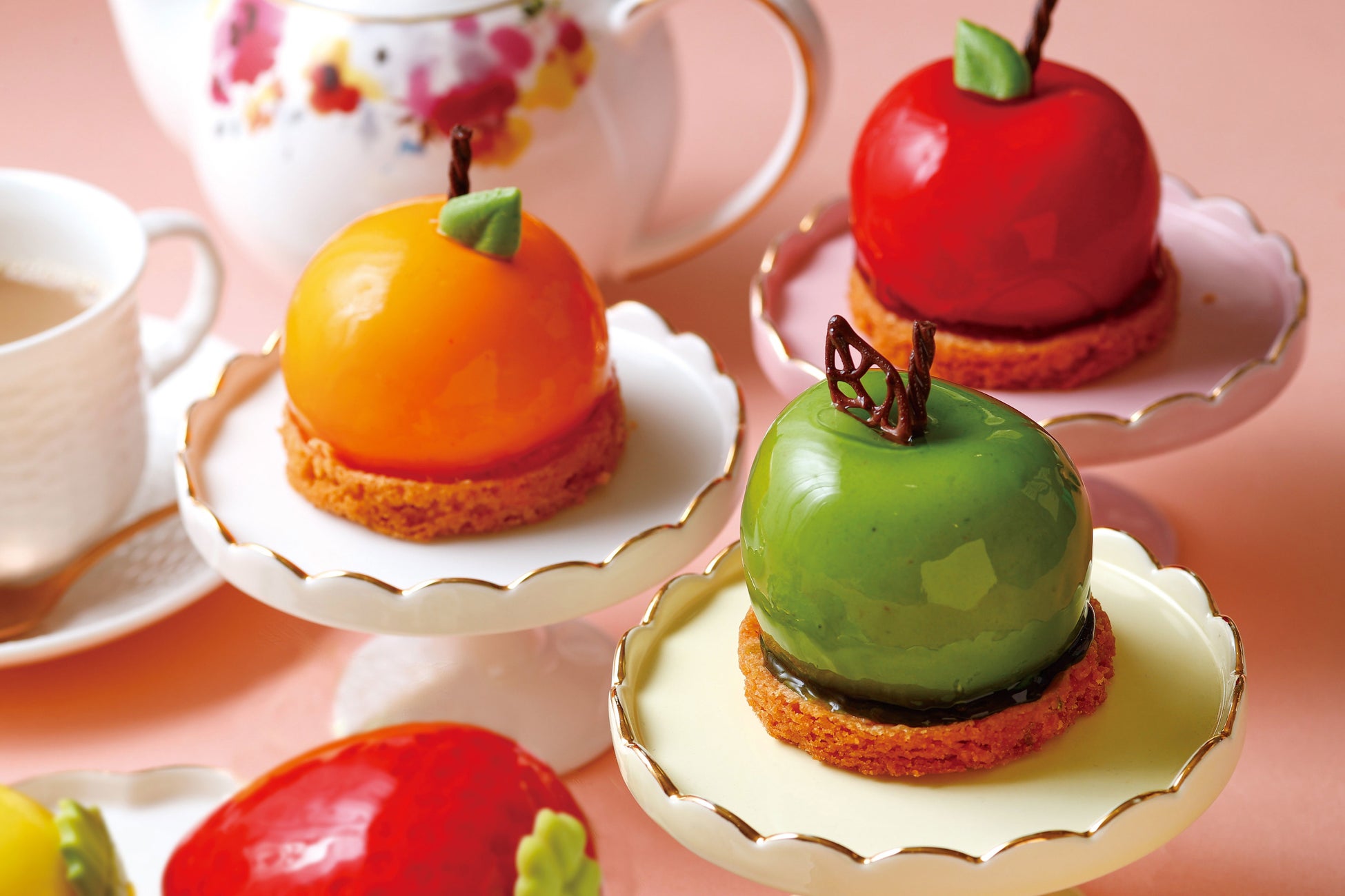 ショコラとリンゴのムースに真っ赤なグラサージュをかけた可愛いケーキ。