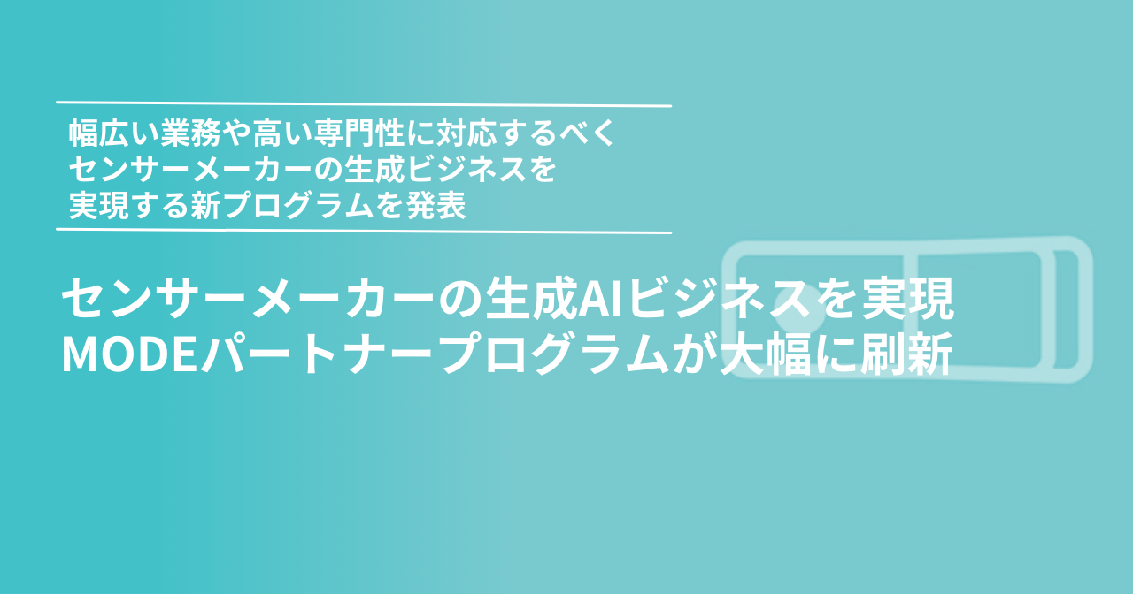センサーメーカーの生成AIビジネスを実現。MODEパートナープログラムが大幅に刷新