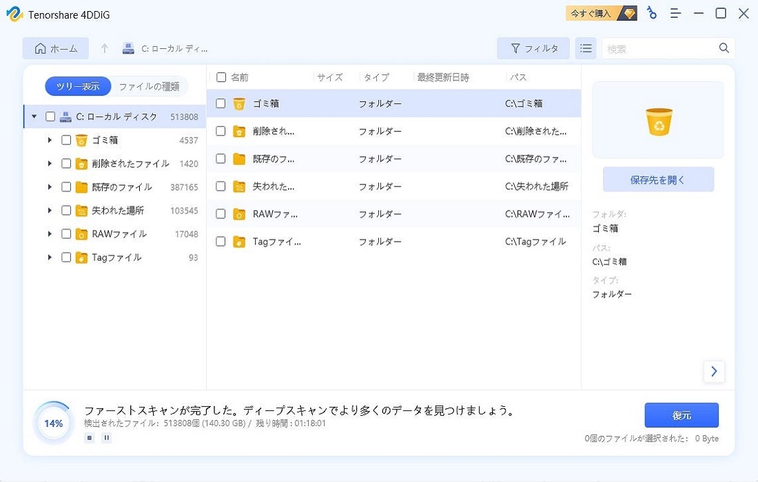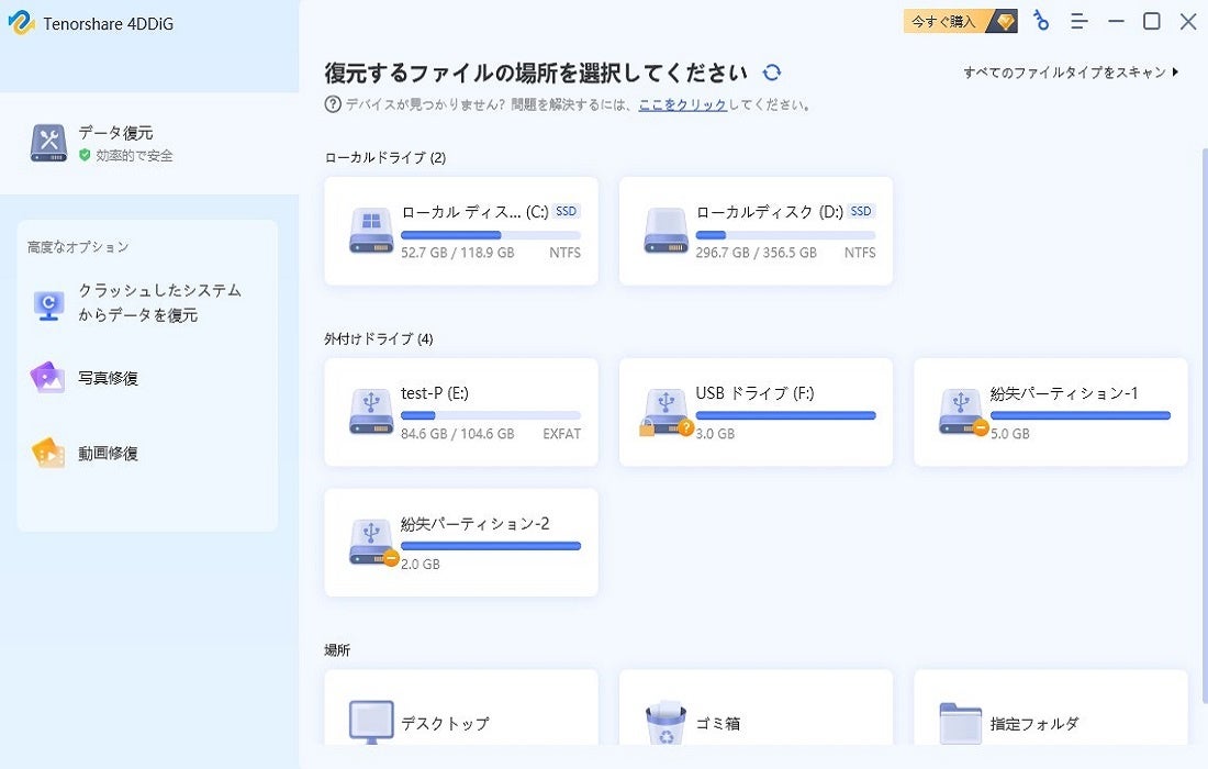 それでもクリーンアップが終わらず、データのバックアップをしていなかった場合は、データ復元ソフト「4DDiG」の出番です。無料ダウンロードして、大切なデータを救出しましょう。