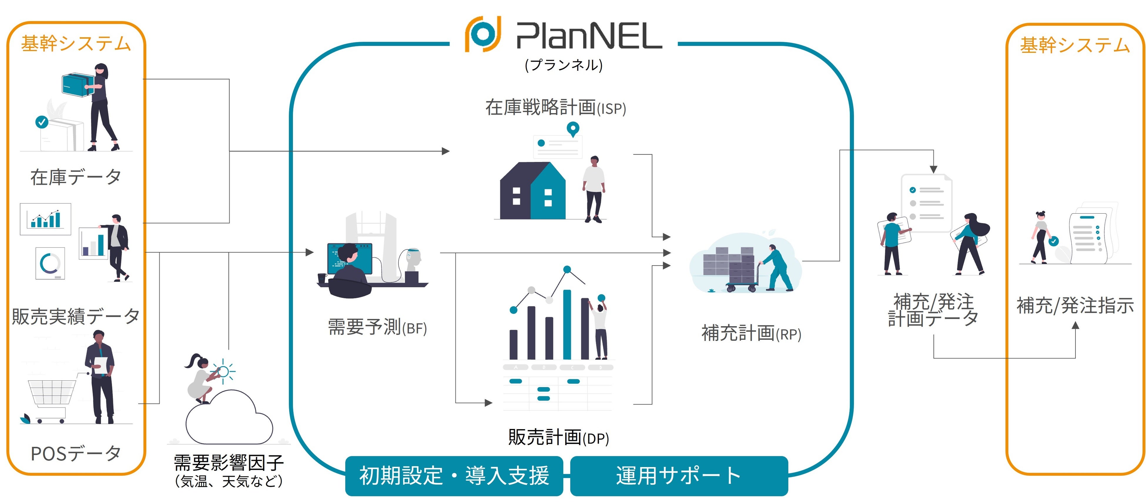PlanNELは、需要予測や在庫管理の精度を高めたいが大規模システムの導入は難しいとお悩みの企業様を支援するためのソリューションです。