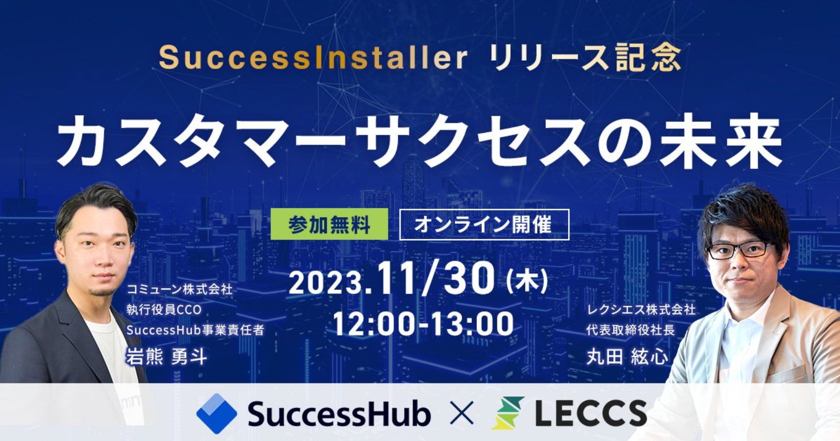 また、2023年11月30日(木)12時〜13時にSuccessInstallerリリース記念の「カスタマーサクセスの未来」についてウェビナーを開催します。お気軽にご参加ください。