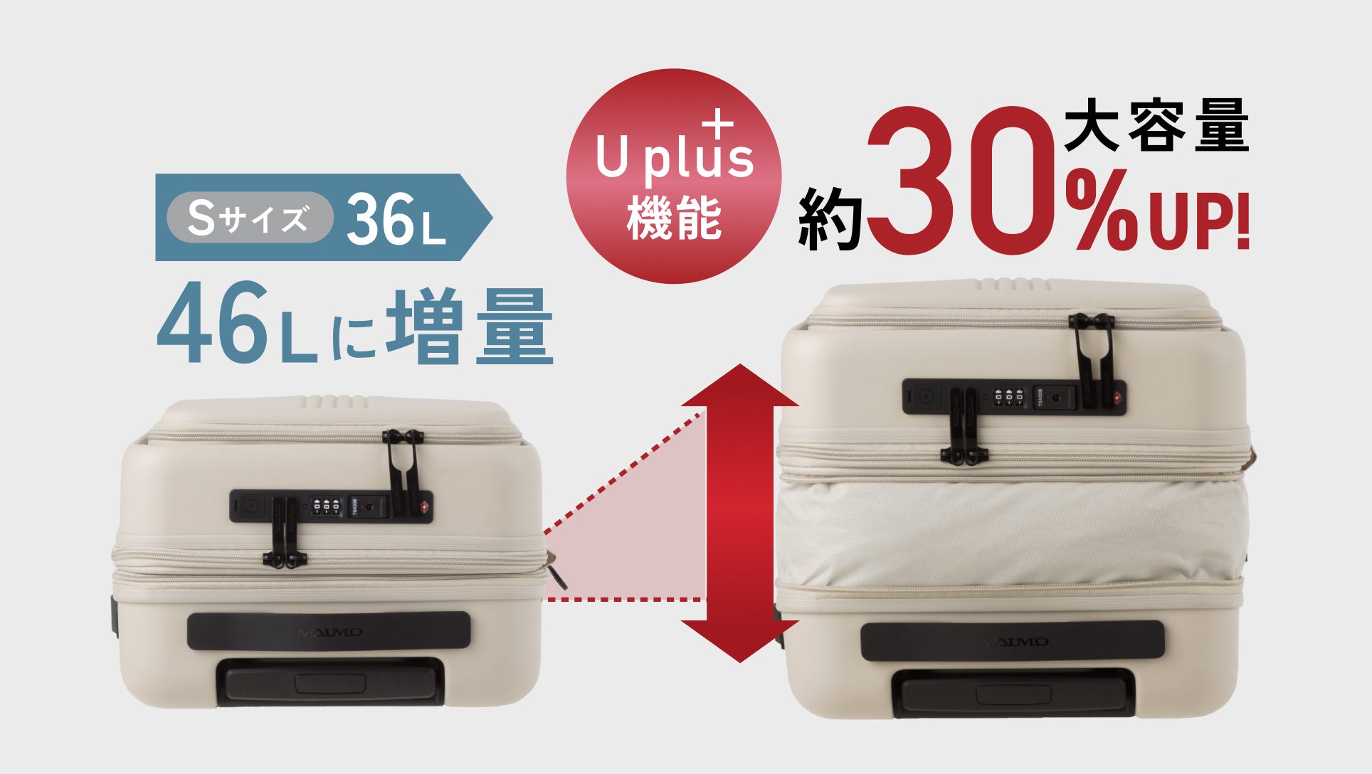 大好評のフロントオープンに拡張機能をプラス!最大8cmの容量アップで荷物が増えても安心。https://maimo-travel.com/products/stand-u-plus