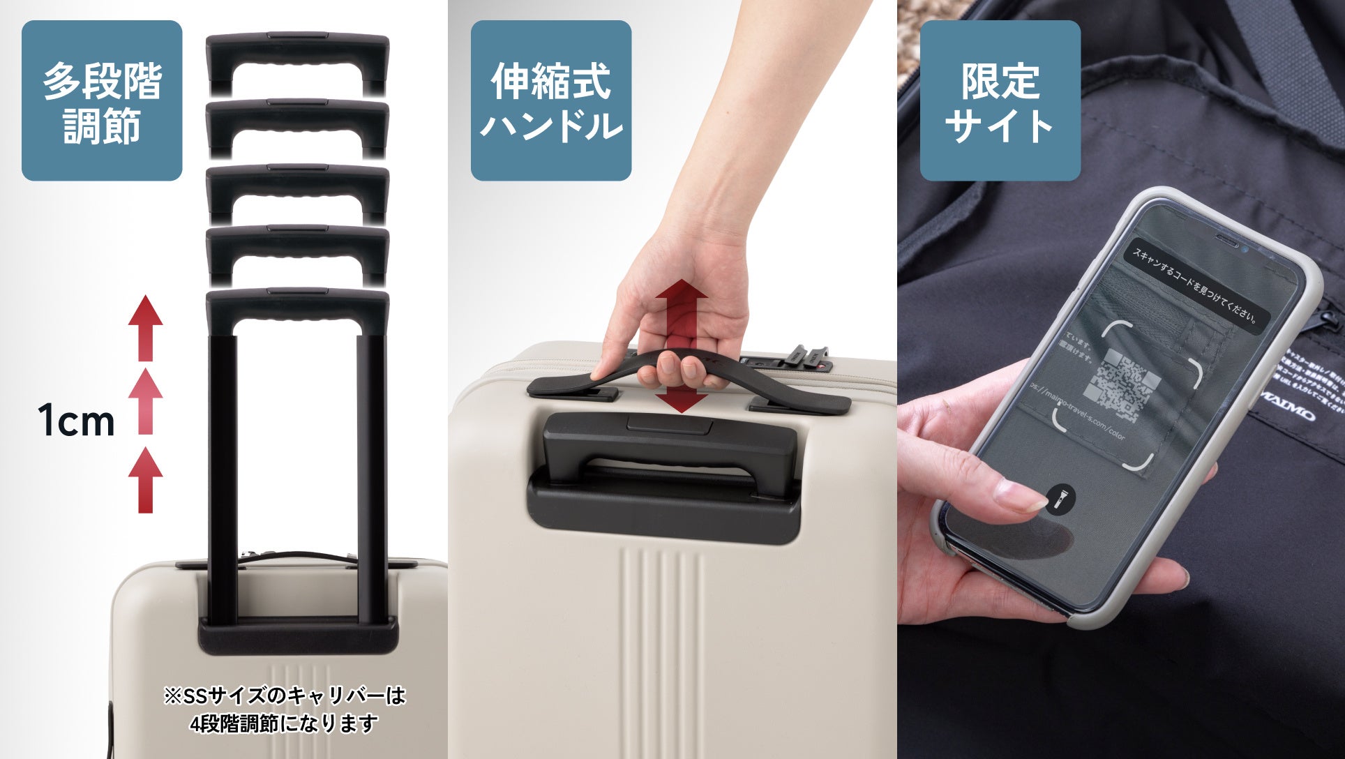 ・お好みの高さで使用できる、多段階調整可能キャリーバー