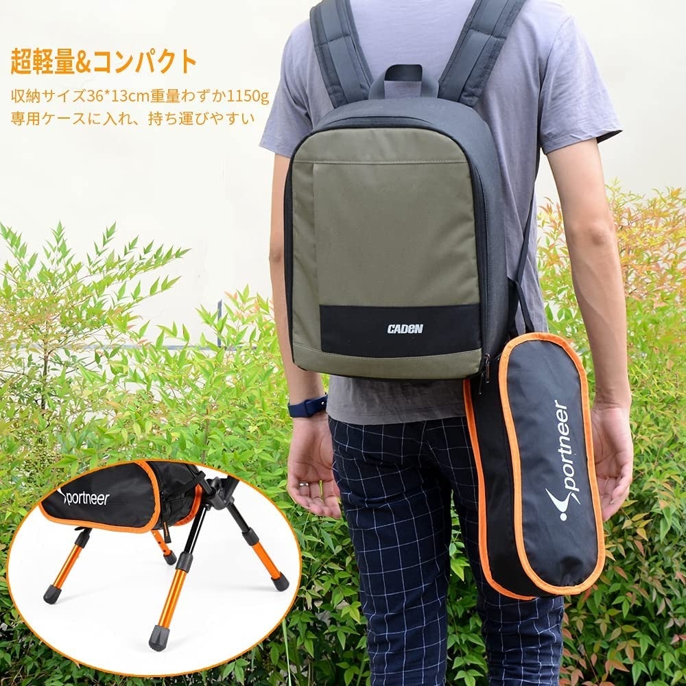 重量はわずか1150g、収納サイズ約36㎝×13cmとコンパクトな仕様。スムーズに組立が可能で、女性でも扱いやすいキャンプチェアです。専用の収納ケースはベルトを通せるデザインで、カラビナなどバッグに付けて持ち運びも可能。組立時には、座面下に取り付けることができるため、ケースを無くしてしまう心配もありません。キャンプや釣りなどのアウトドアシーン、おうち時間など屋内での使用にも、様々な場面で活躍します。