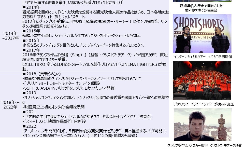 以後、世界各国の映画祭と提携し日本のショートフィルムを世界へ発信。