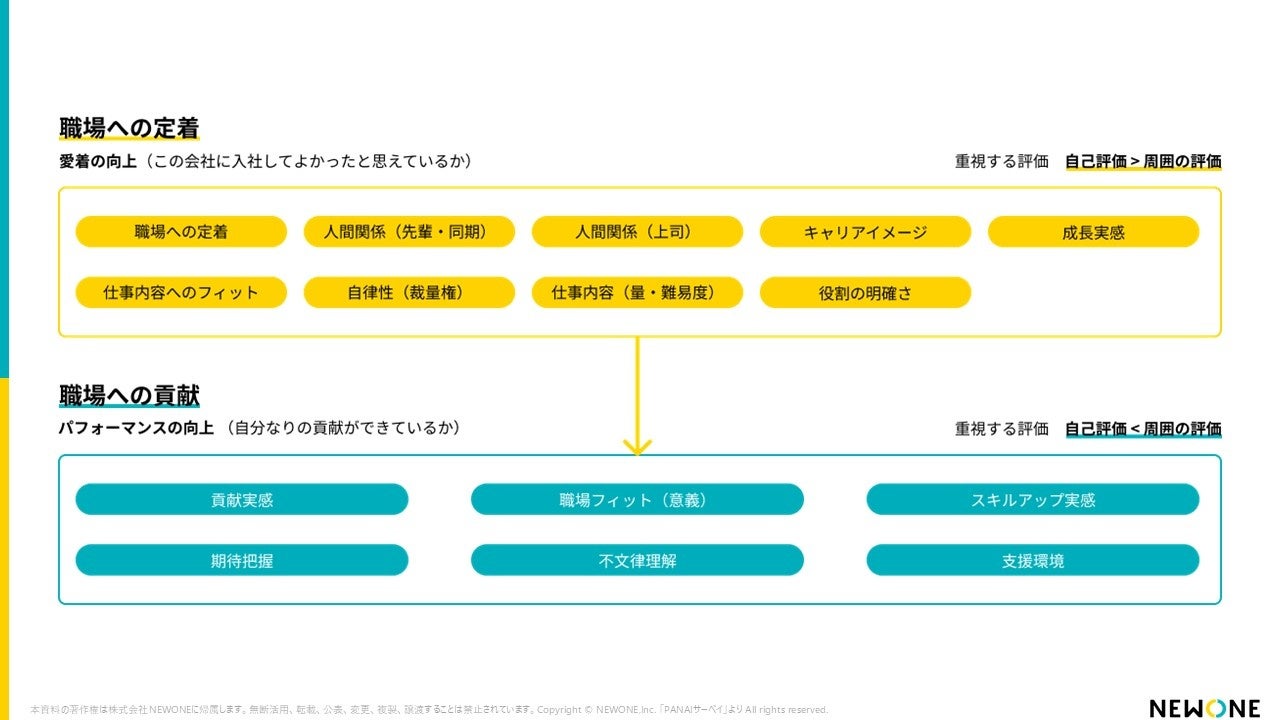 こうした課題に対し、NEWONEでは、職場定着と早期活躍を支援するサーベイ「PANAIサーベイ」を開発。本調査では、PANAIサーベイで蓄積したデータをもとに、新入社員とその上司の間にあるギャップに焦点を当て、“やりっぱなしにしないオンボーディング”の実現に向けてポイントとなる要素を調査しました。