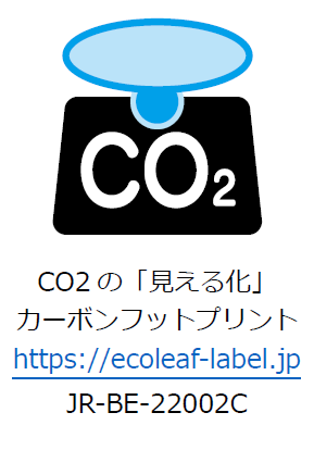 CFPマークはESG対応における信頼ある情報開示ツール「SuMPO環境ラベルプログラム」で取得できるマークです。CFP宣言は温室効果ガス(CO2)という「最も注目される地球温暖化へのインパクト」を見える化し、その削減等を目指すことを目的とするプログラムで、LCA(ライフサイクルアセスメント)手法を用いて製品の原材料調達から廃棄・リサイクルに至るまでのライフサイクル全体における定量的環境情報を「見える化」(表示)する仕組みです。「見える化」された情報に基づき、提供者(事業者)と利用者(消費者等)間における環境負荷削減努力のための相互理解、コミュニケーションを促進します。