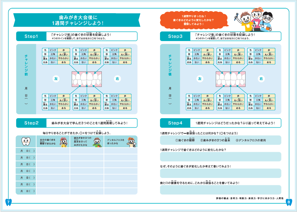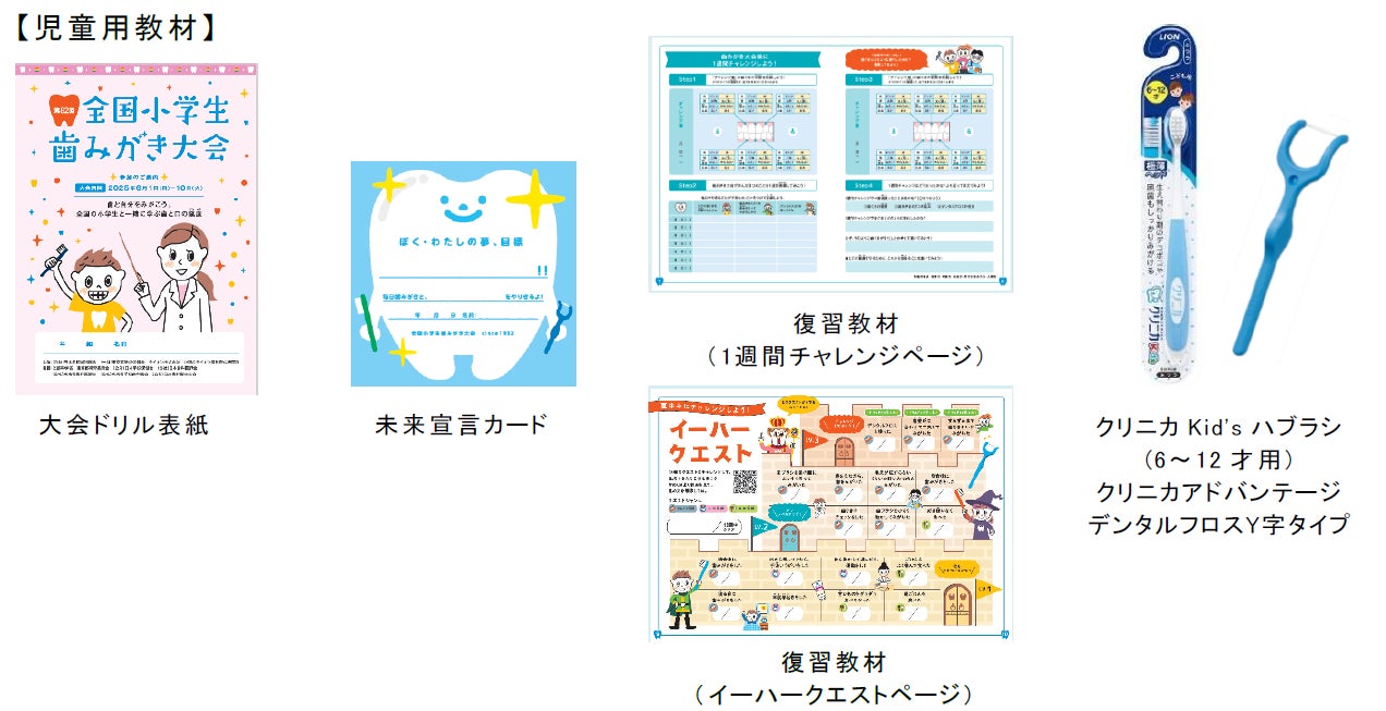大会で学んだ内容を復習できる教材や、毎日の歯みがきの習慣化とともに自分の夢・目標の実現に向けて毎日行うことを記入する「未来宣言カード」など、大会期間中だけでなく年間を通じて活用できるコンテンツを提供しています。今年も、家庭での習慣化をさらに強化するため、歯ぐきの変化を記録する「1週間チャレンジページ」と、長期休暇中に歯みがきや他の生活習慣の必要性が学べる「イーハークエスト」という2つのコンテンツを提供し、小学生の望ましい生活習慣の定着をサポートします。