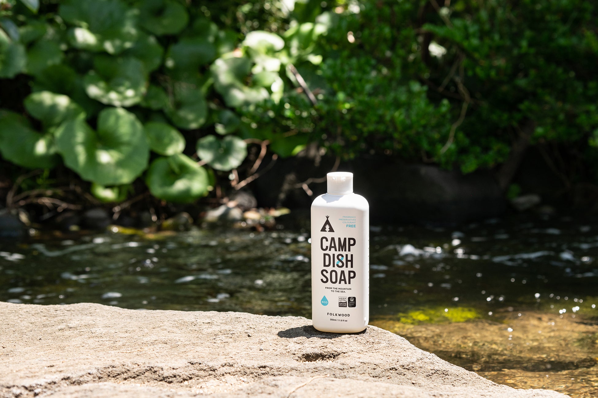 FOLKWOODキャンプディッシュソープは水とパーム油を使用した石ケン素地の天然素材のみで作られています。