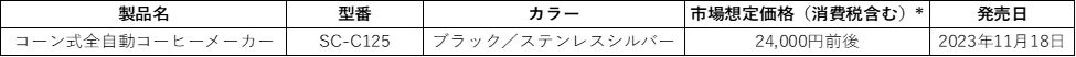 販路限定で、ステンレスサーバーとステンレスフィルターがセットになったコーン式全自動コーヒーメーカー(SC-C125)も発売します。真空二重構造のステンレスサーバーは保温性に優れ、おいしい温度が長続き。さらにステンレスフィルターはコーヒーの油分まで抽出できるため、豆本来のおいしさを引き出し、コクの深い、より本格的な一杯をお楽しみいただけます。